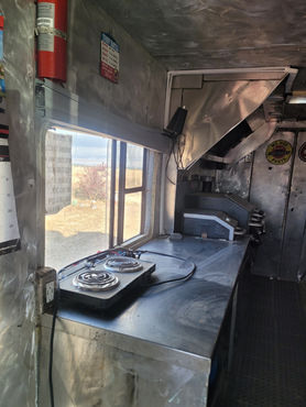 This truck has a 3 compartment sink,Hand wash sink ,Counter space,Shelves,Stainless cleanable surfaces, Griddle, Grill, Pellet smoker, Steam table,Soda fountain, On demand hot water, Grey water tanks, Huge batteries (not sure if they are good), Generator, Great paint job, Nice tires, Small block Chevy engine that has a new distributor, carburetor, and spark plugs Runs Great!